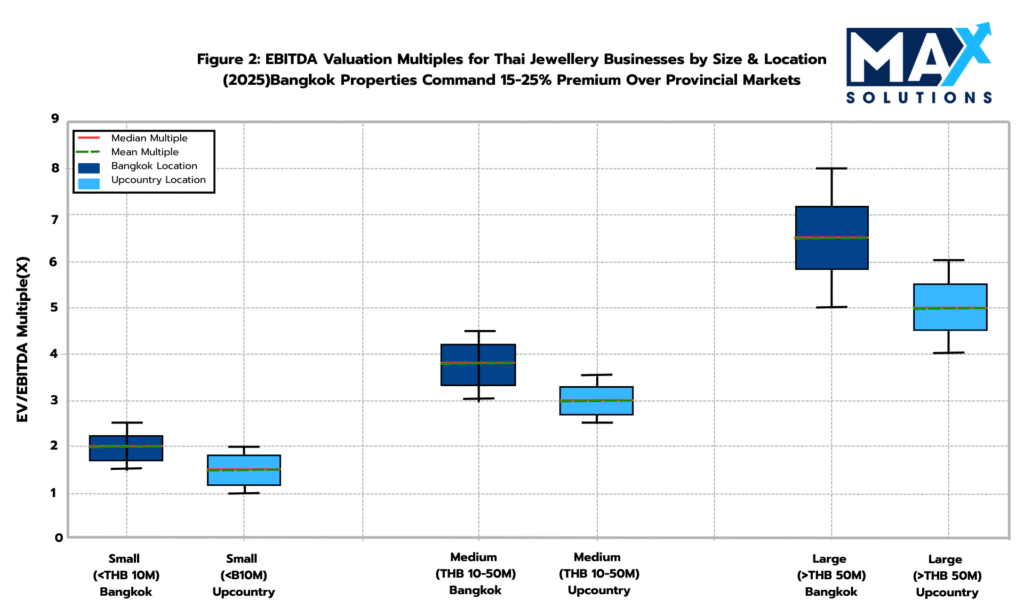 As illustrated in Figure 2, EBITDA multiples for Thai Jewellery Businesses demonstrate clear stratification based on size and location.