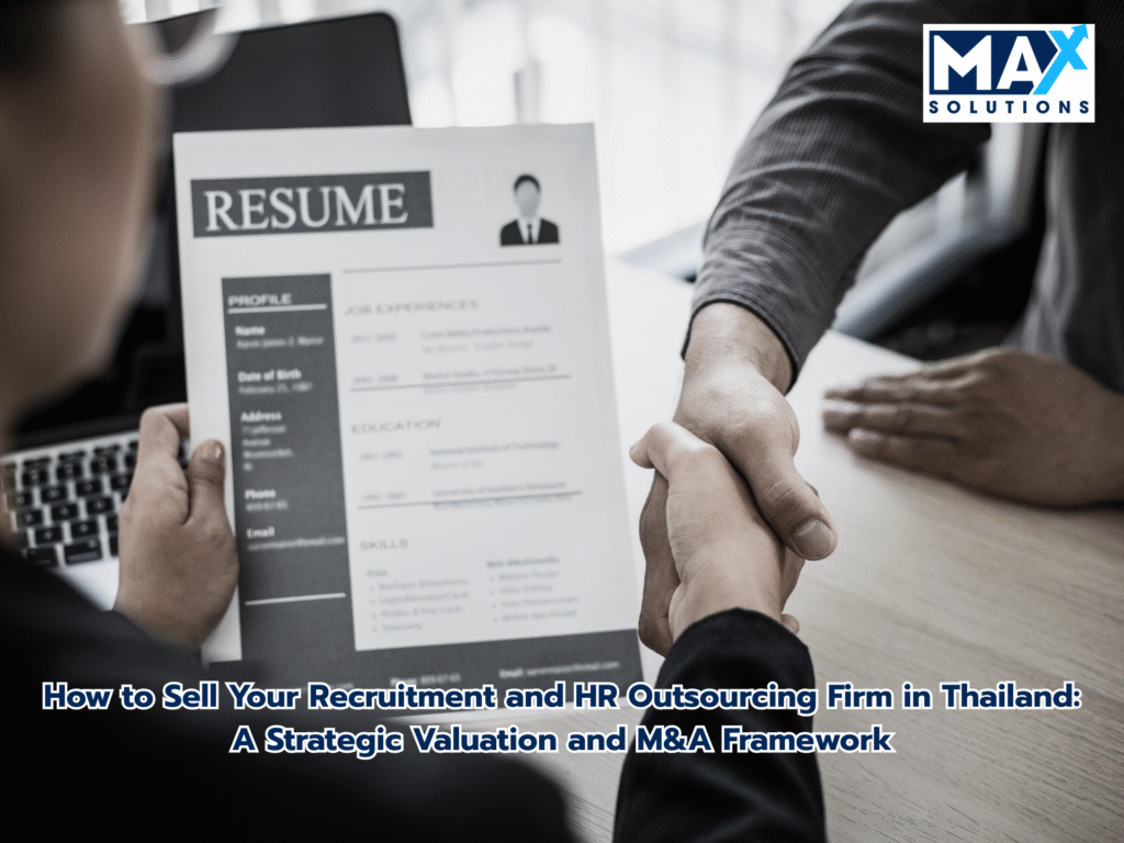 MAX Solutions’ distinctive platform combining M&A expertise with Tanormsak Law Firm’s 50+ years of legal experience and comprehensive accounting services provides Recruitment and HR Outsourcing business owners the strategic advantage necessary to navigate Thailand’s complex regulatory environment while maximizing enterprise value.