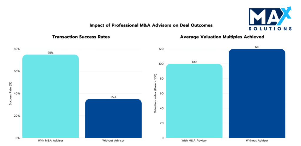 • Higher success rates: Advisor-led transactions are twice as likely to complete successfully, primarily due to thorough preparation, qualified buyer screening, and proactive issue resolution