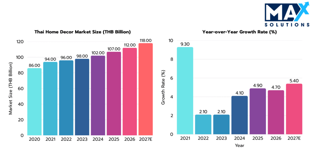 Figure 1: Thai Home Décor Market Growth & Size YoY (THB), 2020-2027E