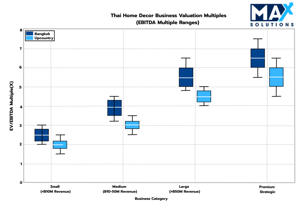 As illustrated in Figure 2, EBITDA multiples for Thai Home Décor Businesses demonstrate clear stratification based on size and location.