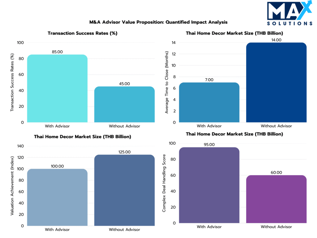 • Superior valuations: Home Décor Businesses sold through advisors achieve 10-30% higher valuations (average 20% premium), directly translating to millions of THB in additional proceeds for owners